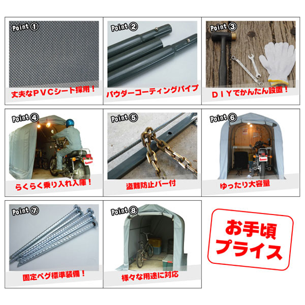 ●丈夫で大容量な収納力をもつバイクガレージです。