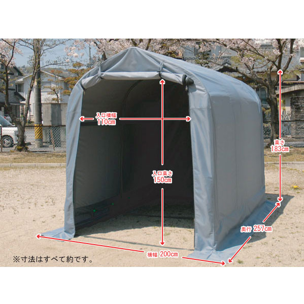 入口:110cm(幅)×150cm(高さ) 内寸:150cm(幅)×224cm(奥行)×180cm(高さ) 外寸:200cm(幅)×257cm(奥行)×183cm(高さ) 梱包:125cm(幅)×31cm(奥行)×18cm(高さ) |