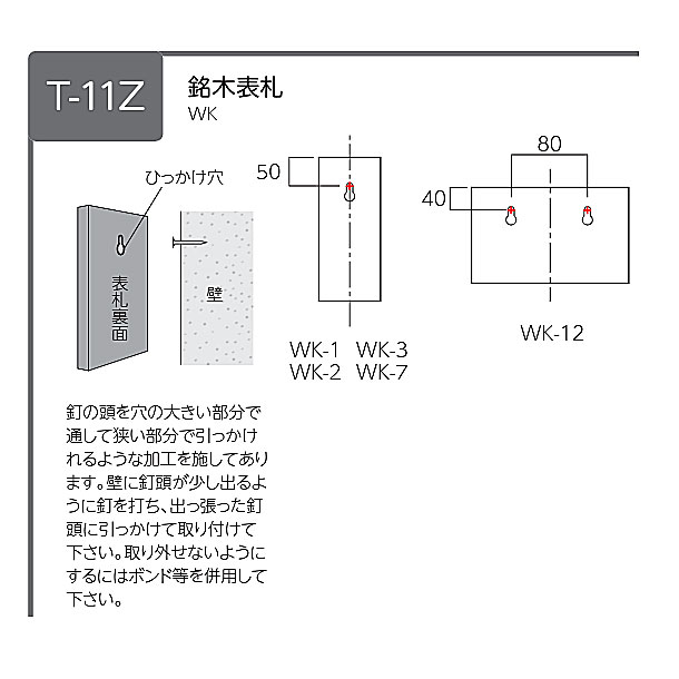 ひっかけ穴(T-11Zタイプ) ※ボルト付きに変更可能(別途料金) |