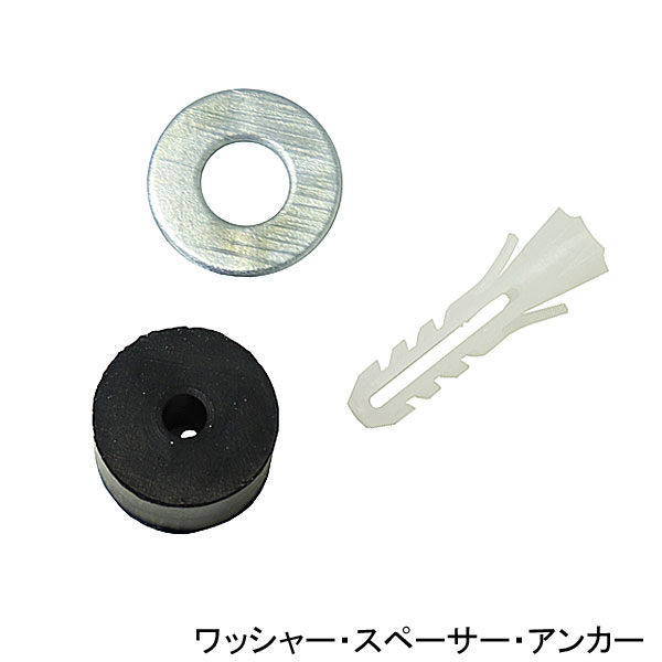 ●壁面取付用アンカー(コンクリート、モルタル用)、取付ネジ、ワッシャー、スペーサーが付属しております。