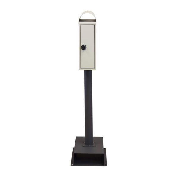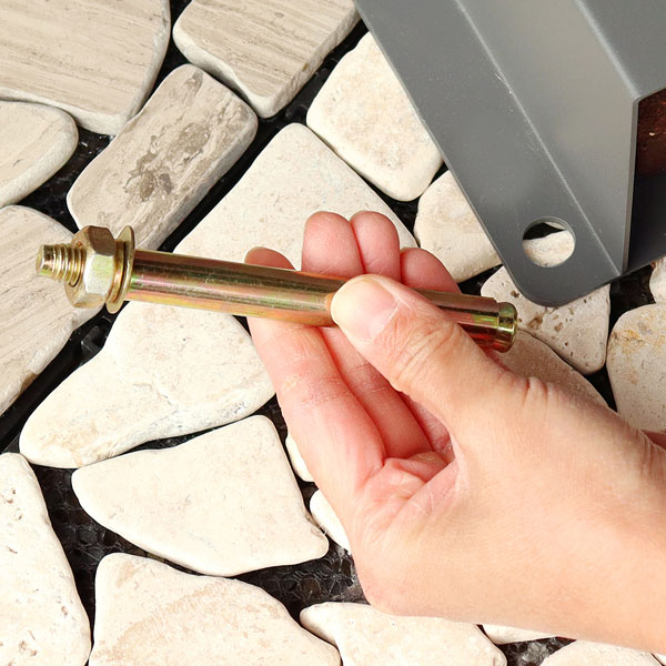 ●地面固定用のアンカーボルトが付属しております。土台部にアンカーボルトを打ち込む穴があり、地面とポストを固定することも可能です。