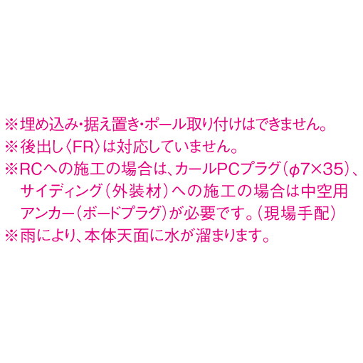 ●住宅の壁面には埋め込みしないでください。住宅内への第三者の侵入のおそれがあります。
