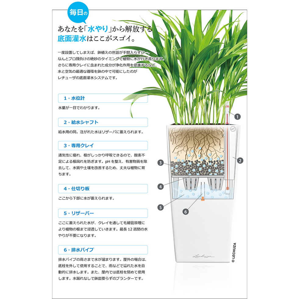 | セット内容 | 本体、ライナー、底面灌水セット、Lechuza-PON(クレイ)、説明書 |