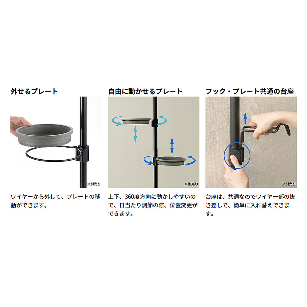 | 備考 | ・お客様組立品です。 ・屋内用です。屋外では使用しないでください。 ・取付け部材(フック・プレート:別売)を配置して、様々なアレンジを楽しむことができます。 ハンギングポール用フックはこちらから。 ハンギングポール用プレートはこちらから。 ・商品の色はPCと異なって見える場合があり、またPCによっても異なります。色がイメージと異なるという理由では返品は承りかねますので、予めご了承ください。 |