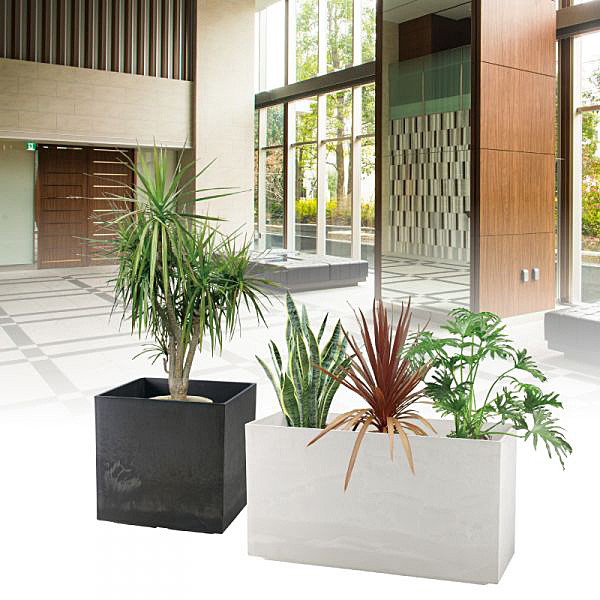 ●室内をボタニカルな雰囲気に演出。こだわりの高い質感の大型ポットカバー。