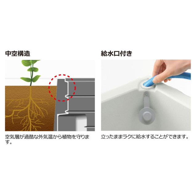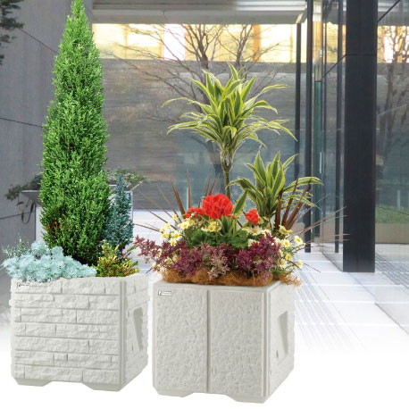 ●水やりの頻度を減らし手間を軽減してくれる底面給水機能付きの大型プランターです。公共施設や病院・店舗・会社・町内美化など幅広くご使用いただけます。