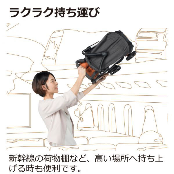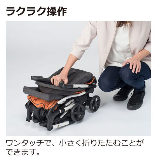 ●軽く小さくたためるコンパクトなB型ベビーカーです。