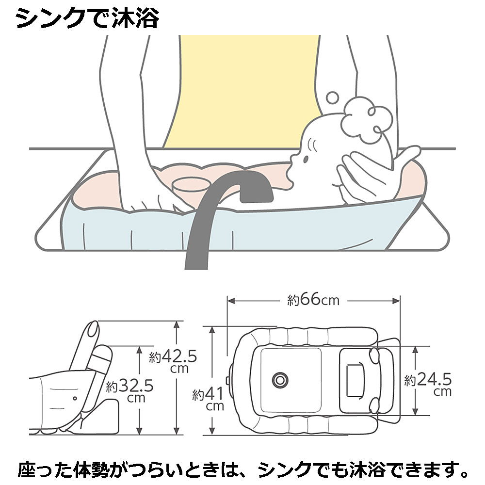 ●座った体勢がつらいときは、シンクでも沐浴できます。