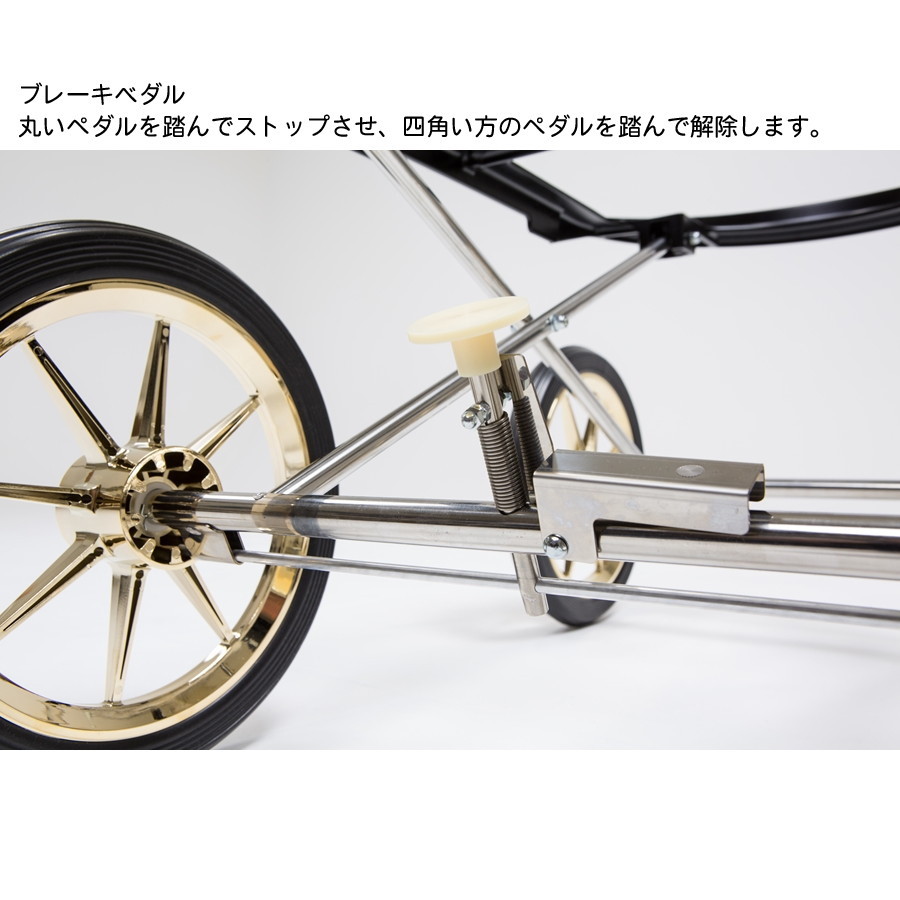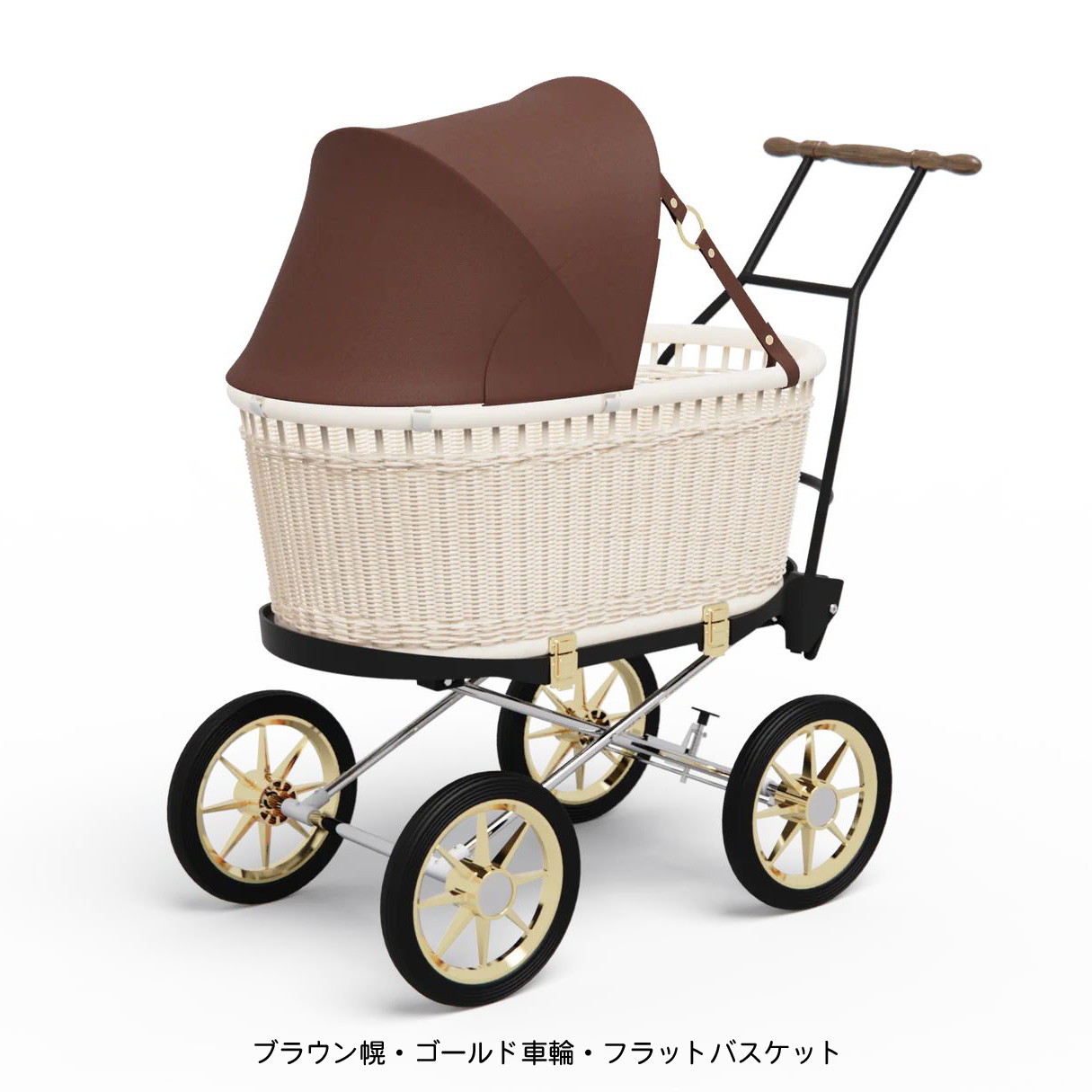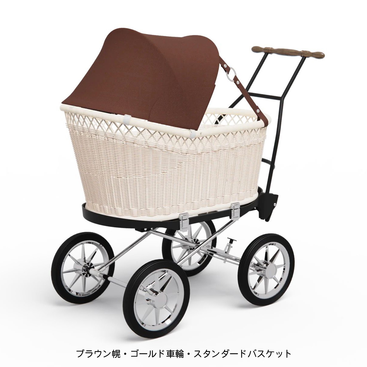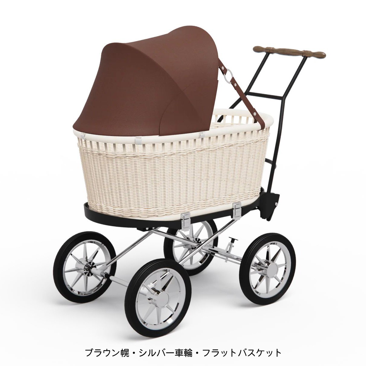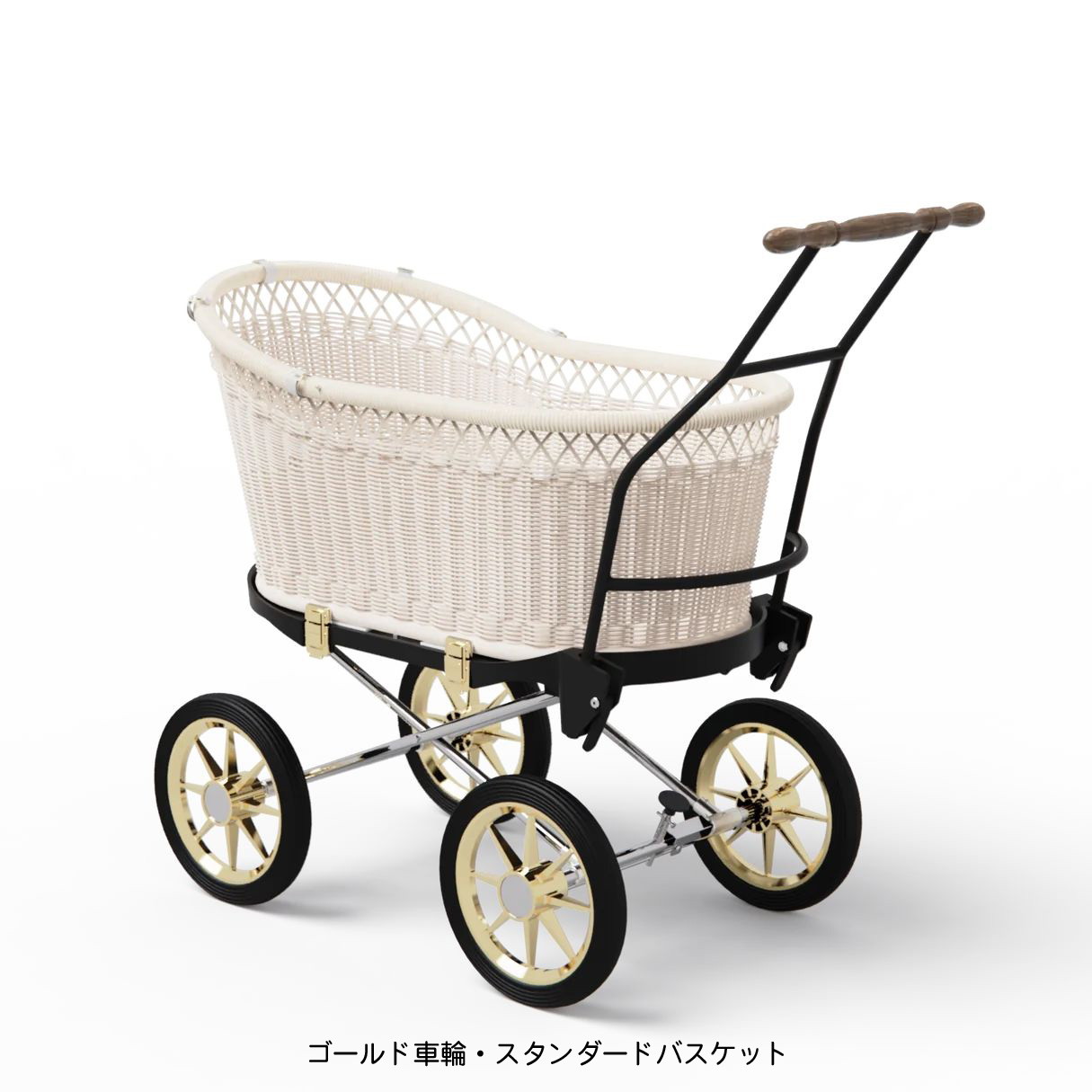 | 材質 | フレーム:アルミニウム 脚:ステンレス タイヤ:発泡プラスチック 車輪ハブ:ABS ハンドル:鉄パイプ グリップ:天然木 バスケット:籐(とう) 幌(ほろ):綿プリント |