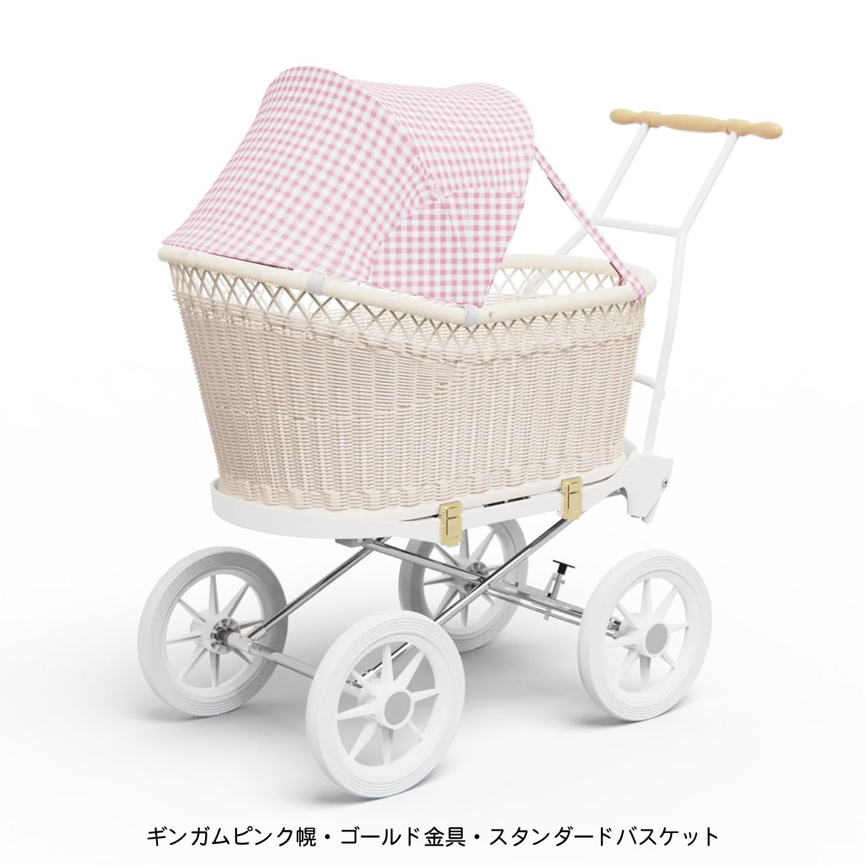 | 材質 | フレーム:アルミニウム 脚:ステンレス タイヤ:発泡プラスチック 車輪ハブ:ABS ハンドル:鉄パイプ グリップ:天然木 バスケット:籐(とう) 幌(ほろ):綿プリント |