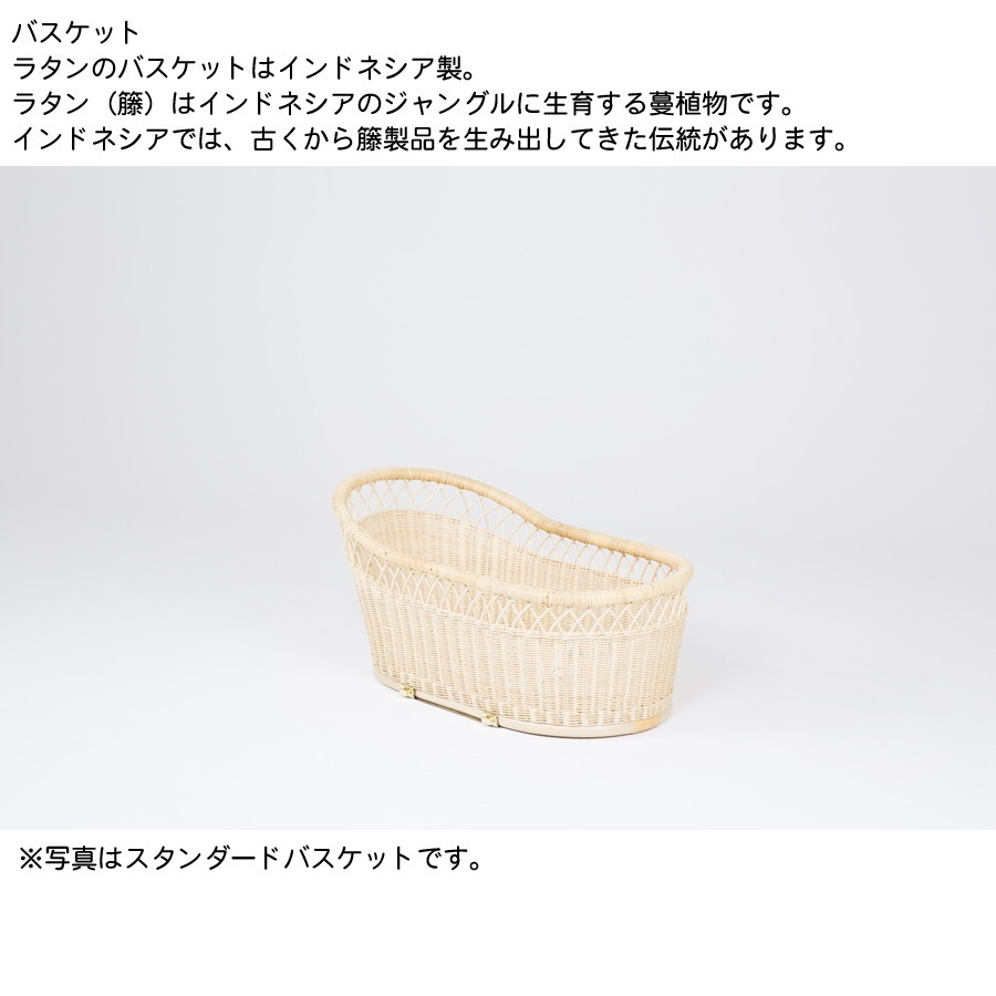 ●ラタンの名産地インドネシアで編まれたバスケットは、赤ちゃん触っても痛くないよう、細心の注意を払っています。日本の工場で一つ一つ手作業で最終的な仕上げを行っております。