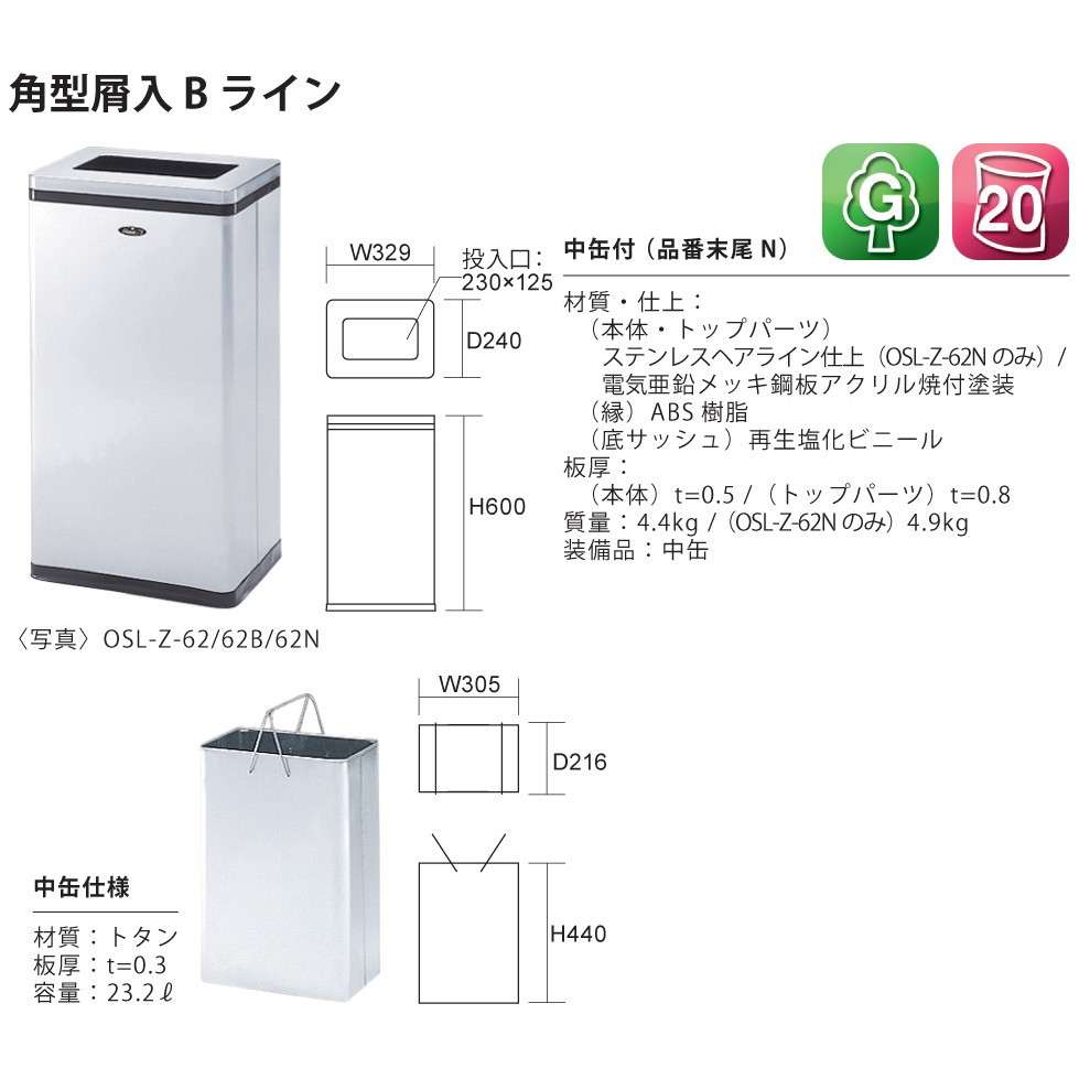 | 商品名 | 角型屑入 Bライン 中缶付 ステンレスヘアライン仕上 OSL-Z-62N |