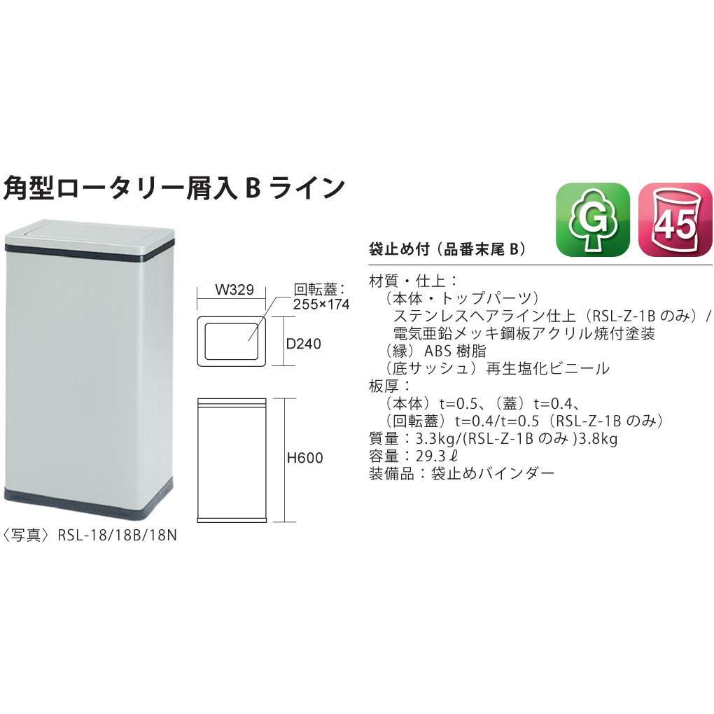 | 商品名 | 角型ロータリー屑入 Bライン 袋止め付 ステンレス RSL-Z-1B |
