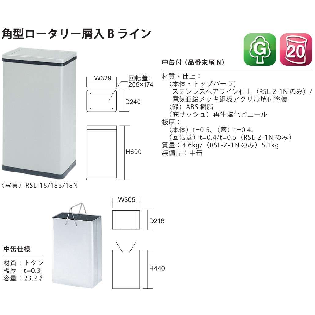 | 商品名 | 角型ロータリー屑入 Bライン 中缶付 ステンレス RSL-Z-1N |