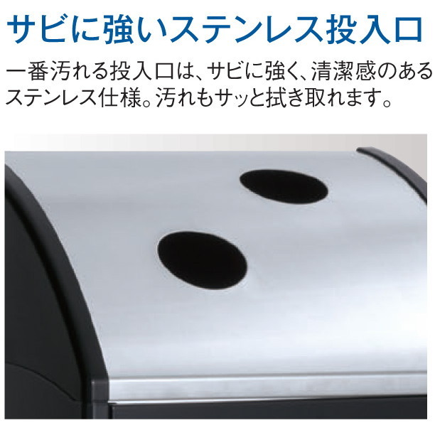 | 備考 | ・種類に応じた分別シールが付属しています。(シールはお客様貼り付けです。付属以外の分別シールは別売りです) ・高さ調節ができるアジャスター付きです。 ・市販の70L用ポリ袋が使用できます。 ・屋内用です。 ・商品の色はPCと異なって見える場合があり、またPCによっても異なります。色がイメージと異なるという理由では返品は承りかねますので、予めご了承ください。 |