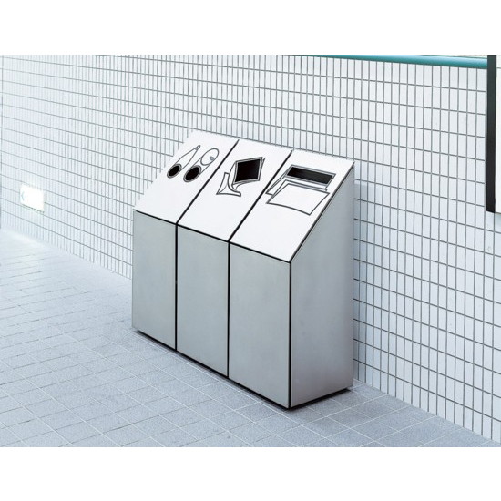 ●インテリジェントビルにぴったり。細部にまでこだわったステンレス製の分別ゴミ箱です。
