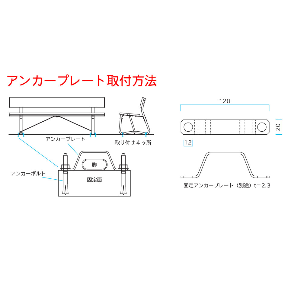 ●ベンチの転倒防止にアンカー固定が可能です。(別途費用)