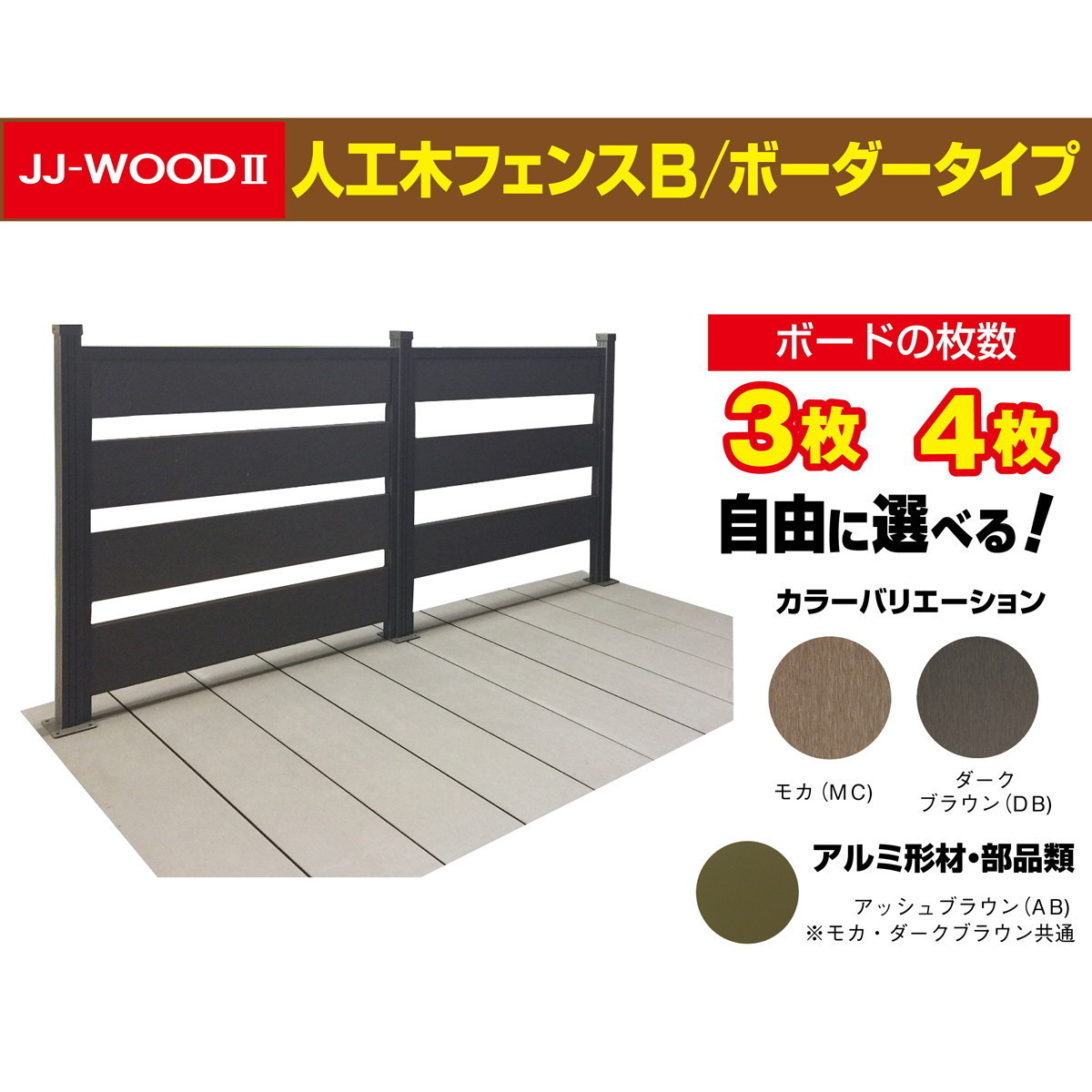| 商品名 | 人工木ウッドデッキ JJ-WOOD II 2.0間9尺 aks29652 ボーダーフェンス付き |
