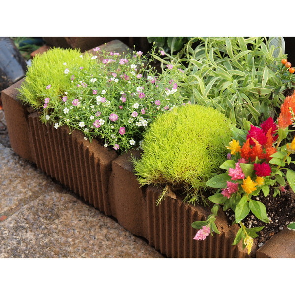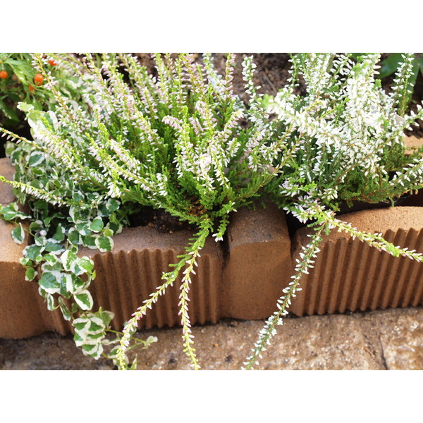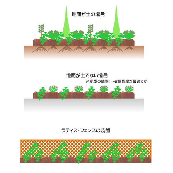●花壇・通路・敷地境界の縁切り、ガーデンライトの土台、ブロック上面の装飾、ラティス・フェンス土台の装飾などに。内側に土を入れて草花を植え込む場合、1~2株程度が最適です。