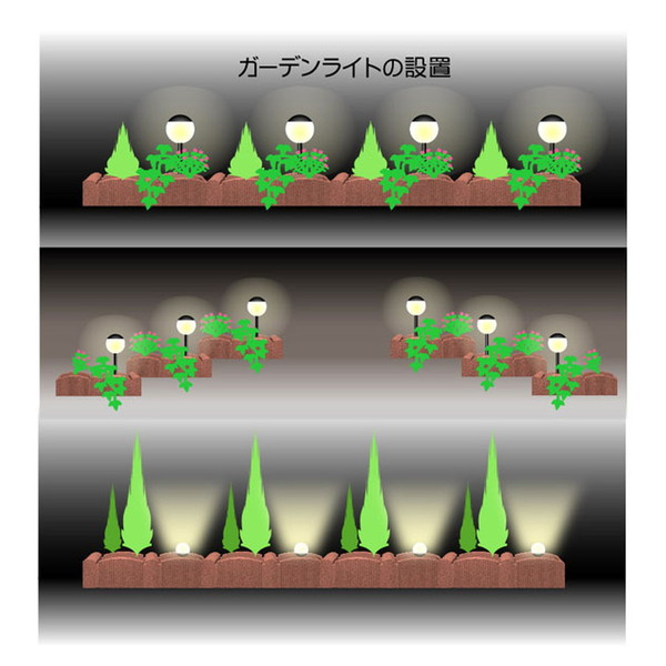 ●ガーデンライトやオブジェクトを入れて土止めにすれば壁とのわずかな隙間でも立体感のある花壇スペースに。