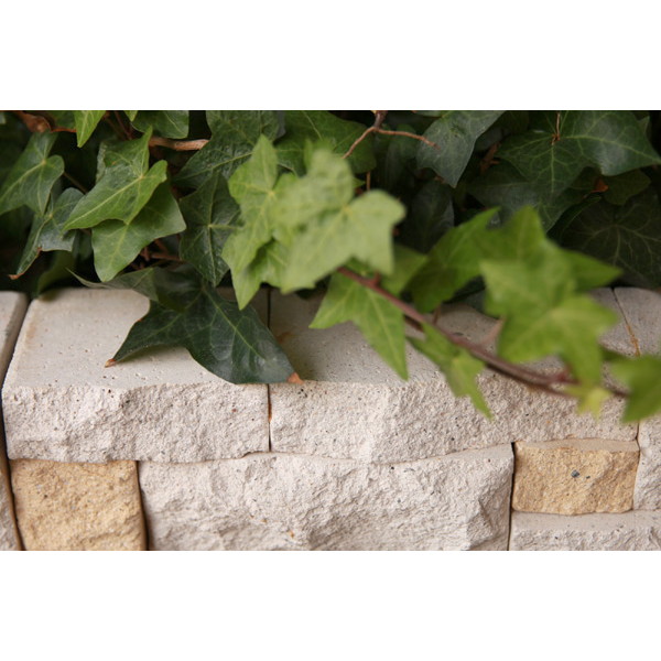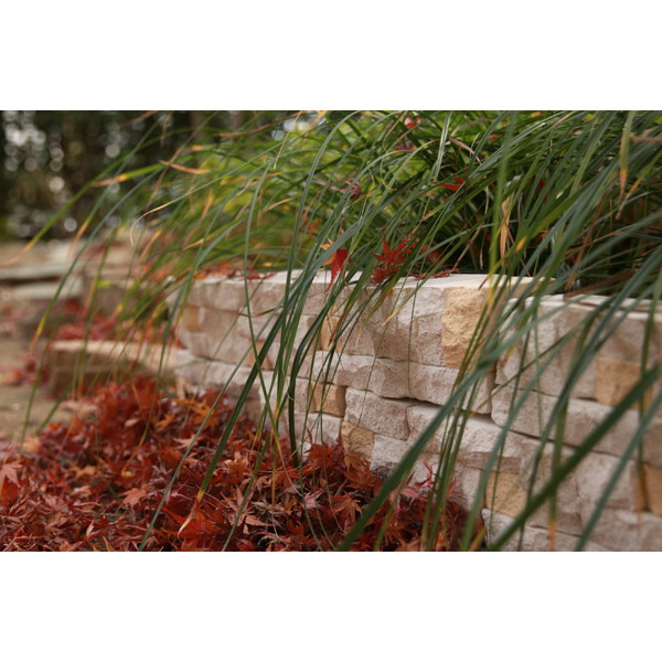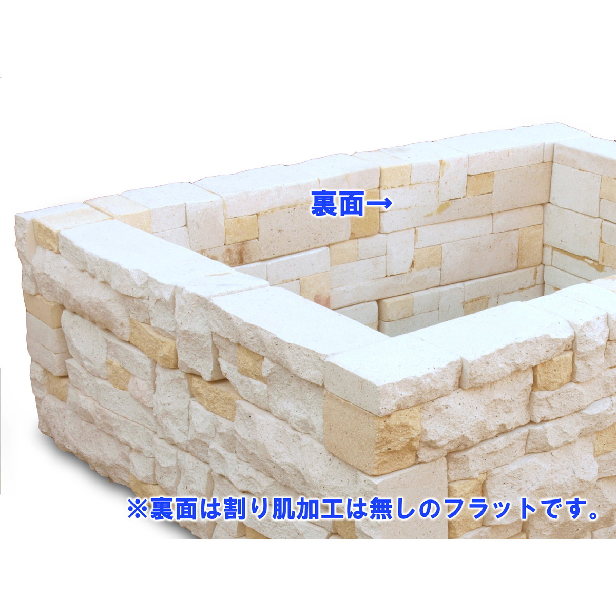 ●1つ1つ手作りで施された割り肌面が自然な陰影を浮かび上がらせる、本格的な質感の花壇ブロックです。天然の岩肌を思わせる美しい表面、シンプルで積みやすい直線的な形状、意匠と機能のどちらをも兼ね備えた、デコレーションブロックです。