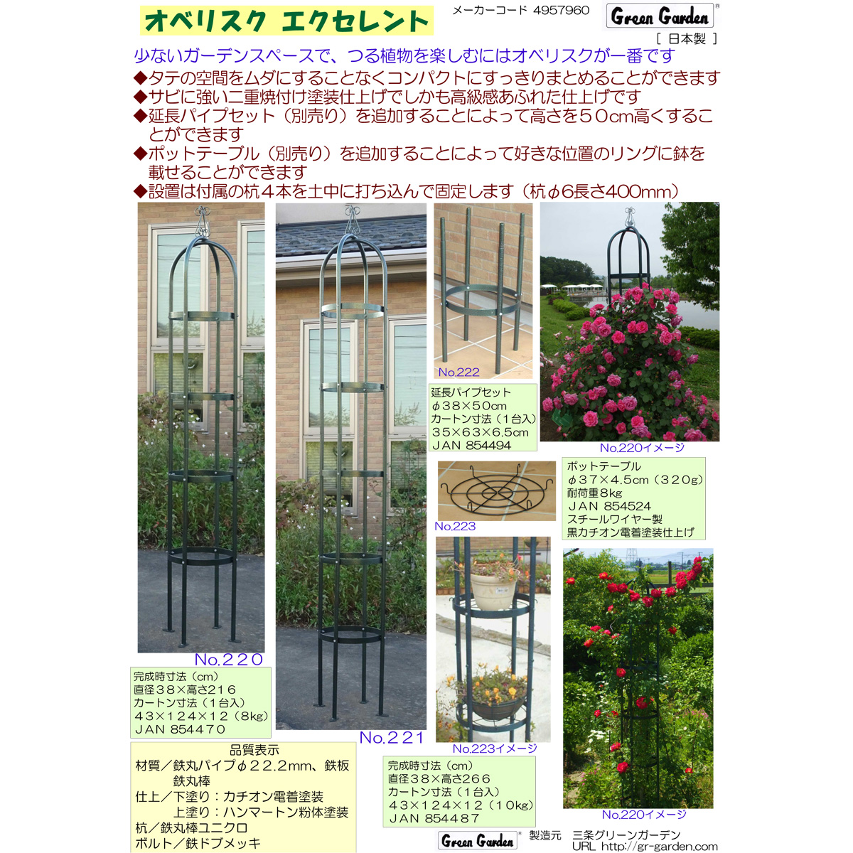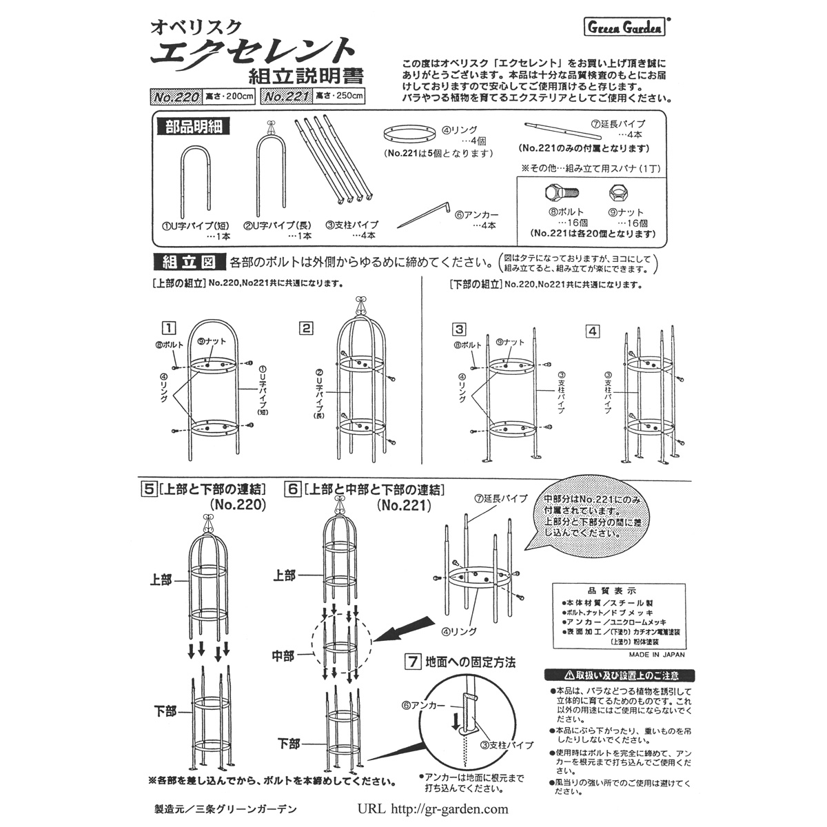 | 備考 | ・オベリスク エクセレントの高さを50cm高くすることができます。 ・商品の色はPCと異なって見える場合があり、またPCによっても異なります。色がイメージと異なるという理由では返品は承りかねますので、予めご了承ください。 |
