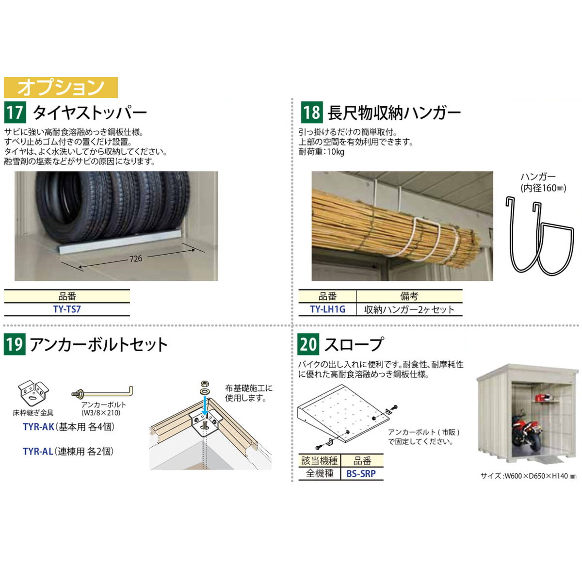 | 付属品 | 鍵:2本 たて樋:2本 アンカープレート:4枚 スタンドクッション:1枚 ※設置用のブロックは付属致しません。 |