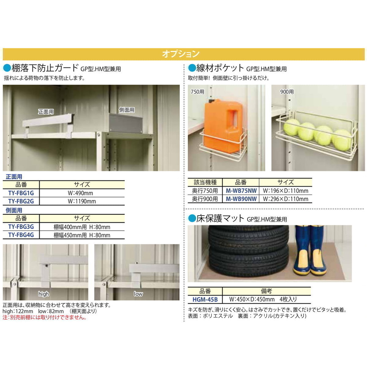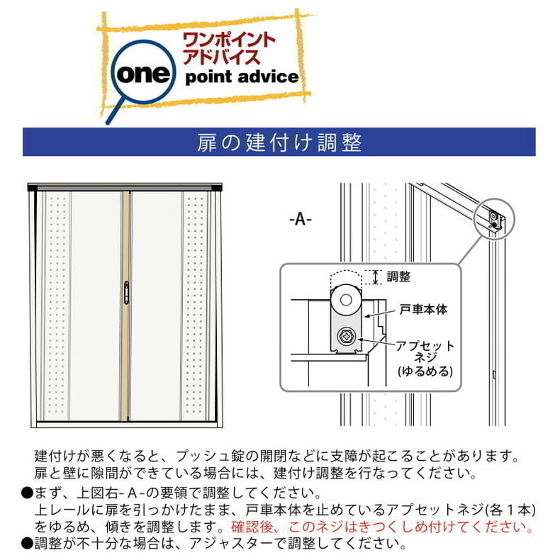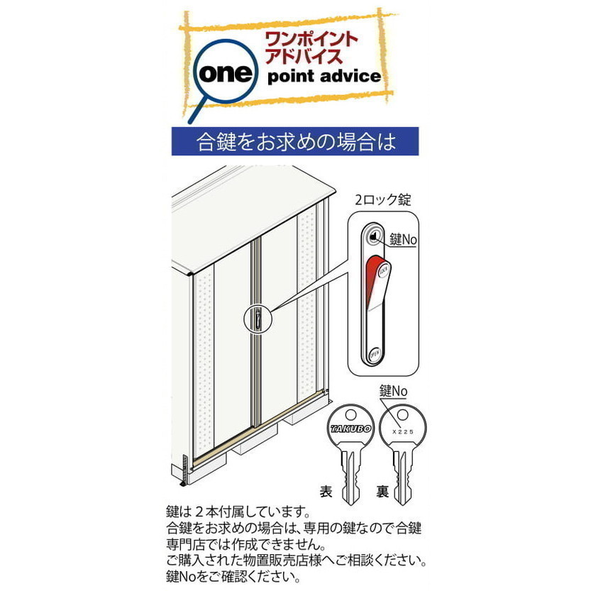 | 付属品 | 鍵:2本 アルミフック:3個 アンカープレート:4枚 棚板、ネット棚:数量は品番により異なります。 ※設置用のブロックは付属致しません。 |