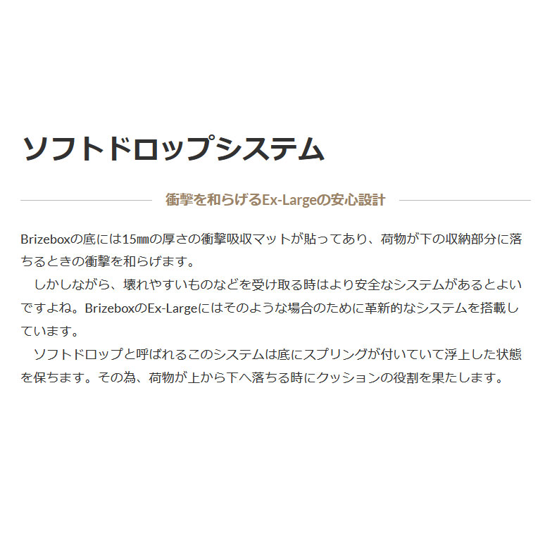 ●荷物収納部の底には15mm厚の衝撃吸収マットが貼られているので荷物が下に落ちるときの衝撃を和らげます。