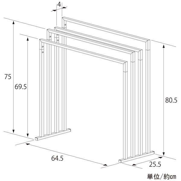 | サイズ | 本体 : 横幅64.5cm × 奥行25.5cm × 高さ80.5cm 梱包時 : 約76cm × 31cm × 4.5cm |