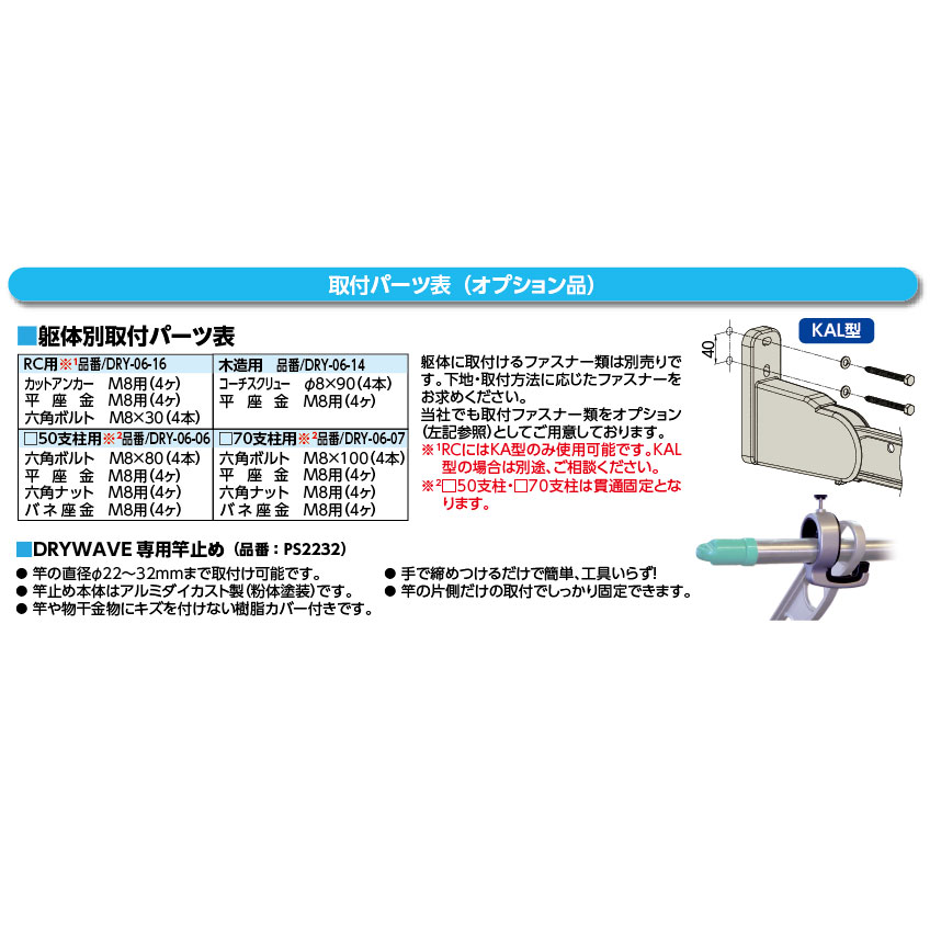 | 商品名 | ドライ・ウェーブ 窓壁用物干金物 KAL85(1セット2本入り) |