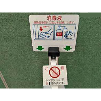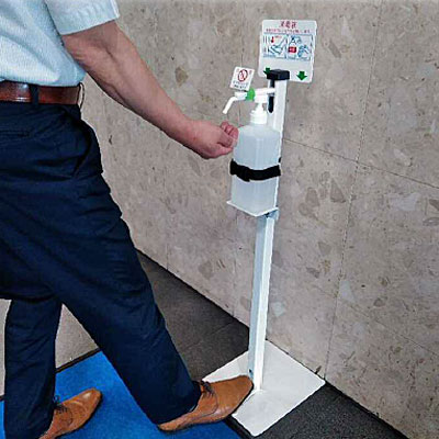 ●足踏み式なので、不特定多数の人が触れるポンプヘッドにタッチする必要がない消毒用スタンドです。