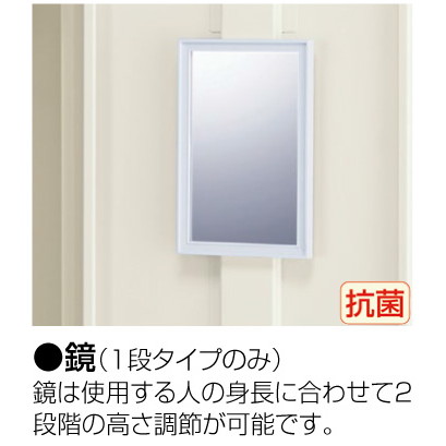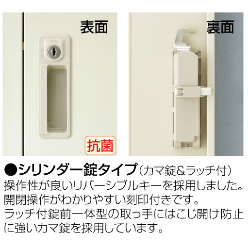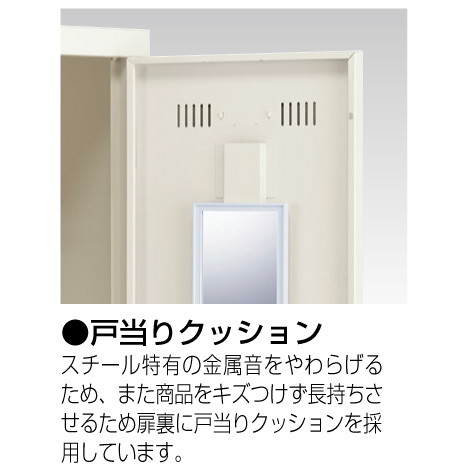 | 材質 | 本体:スチール製、粉体塗装 扉:スチール製、粉体塗装(抗菌加工) 取手:ABS樹脂(一部抗菌加工) |
