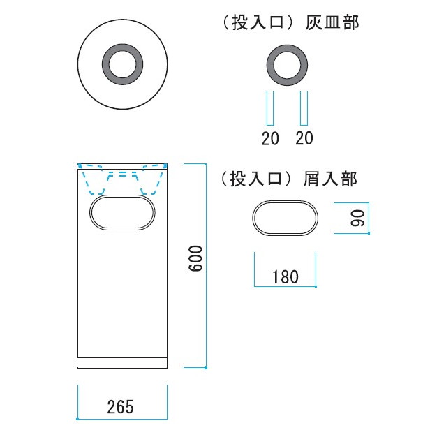 ●灰皿部が広め設計になっている、屑入付きのスタンド灰皿です。