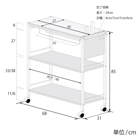 | 商品名 | 包丁スタンド付キッチン作業台 幅68cm 2300 |